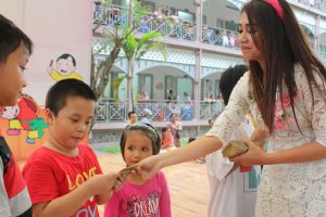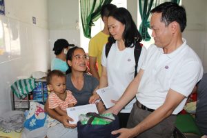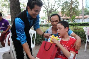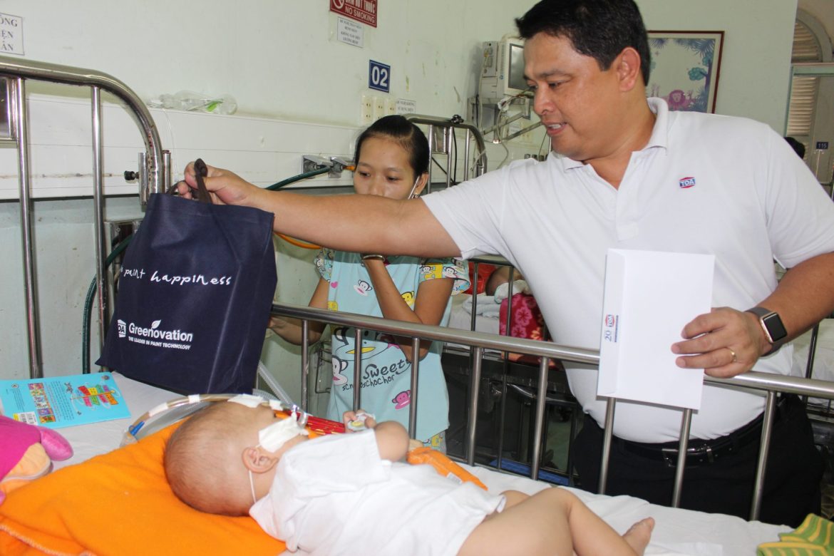Ông Udom Parichatwuttikul – Tổng Giám đốc điều hành toàn quốc công ty sơn TOA Việt Nam trao quà cho các bệnh nhi tại khoa ung bướu – huyết học của bệnh viện Nhi đồng 2.