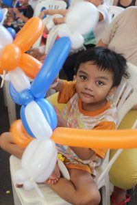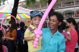 Niềm vui của các bé khi nhận được bong bóng nghệ thuật.