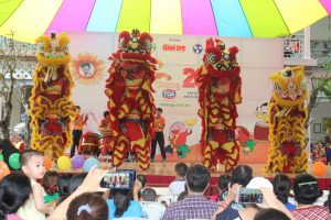 Tiết mục múa lân sư rồng phục vụ các bé bệnh nhi tại bệnh viện Nhi đồng 2.