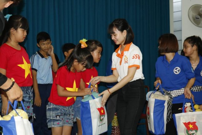 Các em thiếu nhi có hoàn cảnh khó khăn nhận quà từ chương trình.