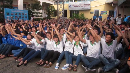 Các thanh niên tình nguyện rất hào hứng và sôi nổi khi tham gia ngày hội – Ảnh: Hoàng Mai