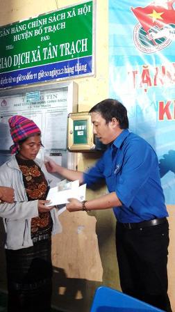 Chiều cùng ngày, đoàn cứu trợ tiếp đến với người dân vùng lũ thuộc 2 xã biên giới Tân Trạch và Thượng Trạch (huyện Bố Trạch). Tại hai xã này, đoàn đã tiếp tục trao tặng 250 phần quà cho học sinh và 250 phần quà cho các hộ dân bị ảnh hưởng mưa, lũ. Mỗi phần quà gồm 1 triệu đồng tiền mặt, nhu yếu phẩm và 200 đôi dép. Bên cạnh đó, mỗi điểm trường học của mỗi xã, đoàn đã tiến hành trao tặng 01 bộ trống Đội. Cụ Đinh Phao ở bản 61 xã Thượng Trạch tâm sự “Nhận được phần quà tôi rất vui, cảm ơn các bạn và nhân dân Thành phố Hồ Chí Minh đã chia sẻ khó khăn với chúng tôi”. Còn chị Y Đi bản Nòong Mới xã Tân Trạch thì chia sẻ trong vui mừng “Nhà tôi được ăn cơm rồi, mấy bữa trước toàn ăn ngô ăn khoai thôi”.