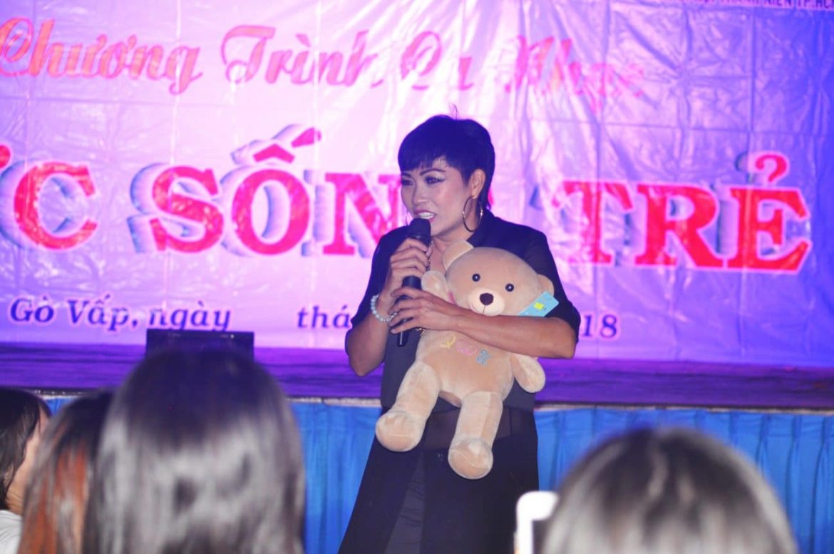 Ca sĩ Phương Thanh biểu diễn giao lưu trong chương trình “Chung sức trẻ”.