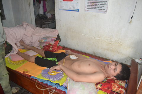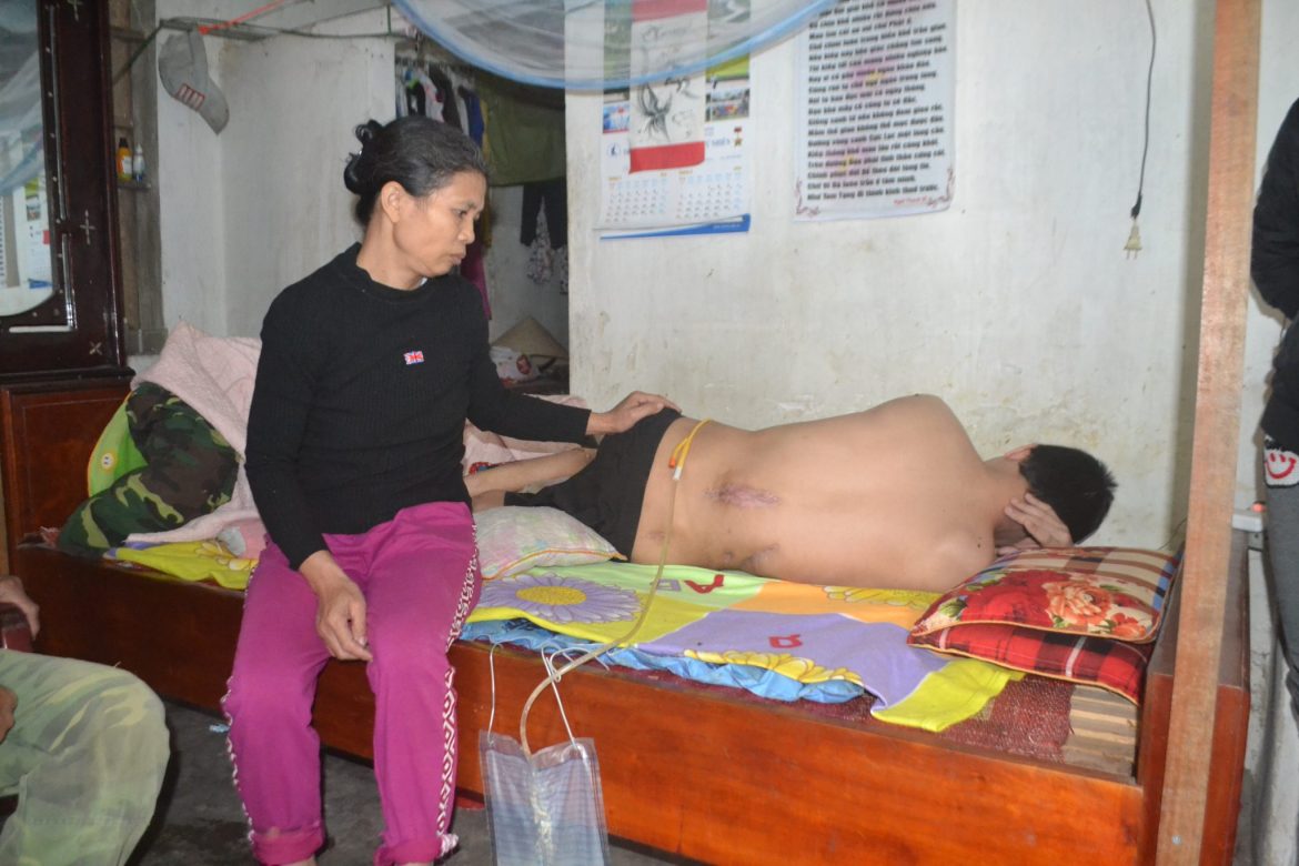 Trong lúc đi làm công nhân xây dựng, chàng trai trẻ không may bị máy vận thăng từ trên cao rơi xuống đè lên người, khiến một nửa cơ thể bị liệt, giờ chỉ có nằm một chỗ.