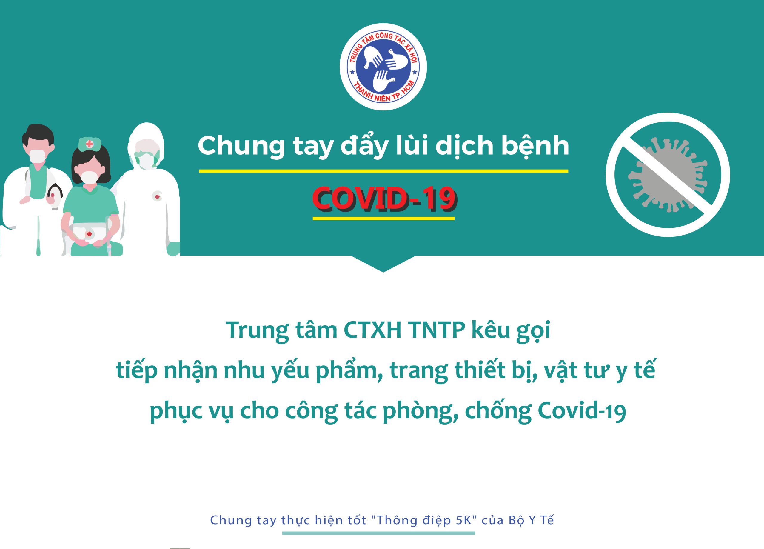 Trung tâm công tác xã hội Thanh niên Thành phố Hồ Chí Minh kêu gọi các cơ quan, đơn vị, tổ chức, doanh nghiệp, các nhà hảo tâm và toàn thể nhân dân thành phố bằng tình cảm sâu sắc, trách nhiệm và điều kiện của mình, chung sức, đồng lòng chống dịch. Trung tâm tiếp nhận các nhu yếu phẩm, trang thiết bị, vật tư y tế và sự ủng hộ quỹ phòng, chống dịch COVID-19.