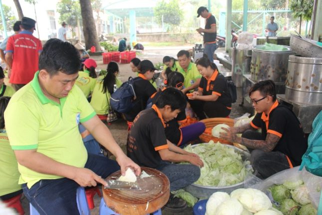 Có thể nói, để có mặt tại Trung tâm Công tác xã hội Thanh niên Thành phố trong khoảng lúc 4g sáng cho chuyến đi, các thành viên trong đoàn đã phải thức dậy từ lúc 2g sáng, thậm chí có thành viên phải thức trắng đêm để đi chợ mua thịt, rau củ quả.
