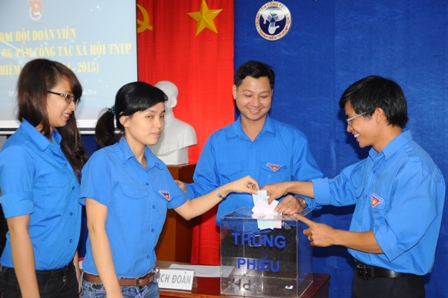 Đoàn viên Chi đoàn trung tâm Công tác xã hội Thanh niên bỏ phiếu bầu cử tại đại hội.