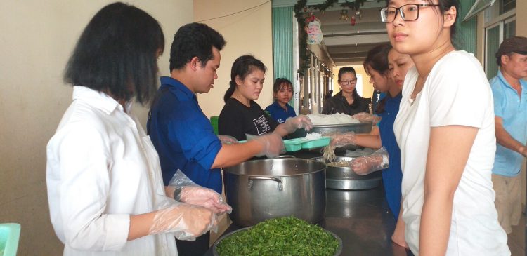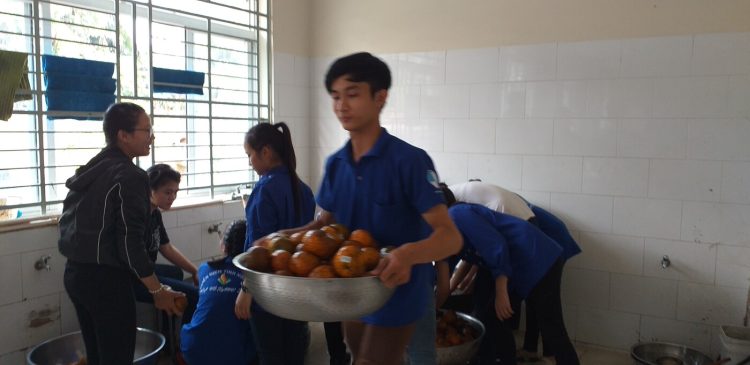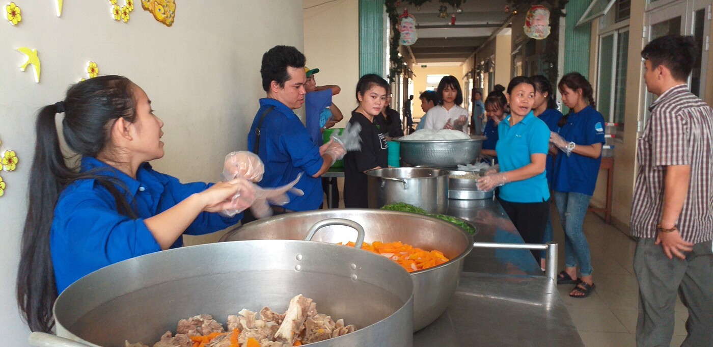 Các bạn đội viên, tình nguyện viên đến từ rất sớm, được phân chia công việc cụ thể cho mối nhóm để kịp thời gian cho bữa ăn vào buổi chiều. Đội đồng hành cùng với nhân viên Trung tâm thực hiện các công đoạn sơ chế thức ăn, rau củ quả và nấu lên những suất bánh canh thật thơm ngon, đầy đủ chất dinh dưỡng. Bên cạnh đó, các tiết mục song ca, tốp ca với tựa đề như “Mẹ yêu”, “Cha” của các bạn đã thật sự chạm đến trái tim, khuấy động bầu không khí sôi động, giữa tiết trời nóng bức ấy nhưng nét mặt của ai nấy cũng đều vui tươi, hớn hở.
