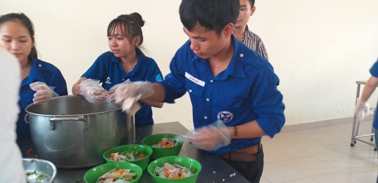 Những phần bánh canh được các bạn Đội viên, tình nguyện viên tham gia chương trình chuẩn bị sẵn sàn cho bữa ăn chiều.