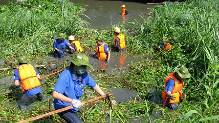 Đoàn viên thanh niên tham gia cải tạo, khơi thông dòng chảy các tuyến kênh góp phần cải thiện môi trường và xây dựng văn minh đô thị cho TP.HCM – Ảnh: Q.L.