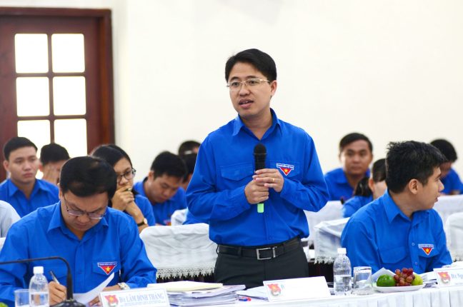 | Phó bí thư thường trực Thành đoàn Lâm Đình Thắng báo cáo tại buổi làm việc – Ảnh: Duyên Phan |