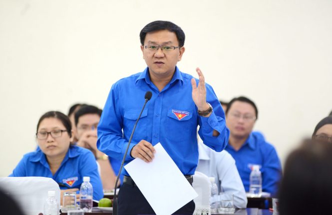 | Phó bí thư Thành đoàn Phạm Hồng Sơn phát biểu tại buổi làm việc – Ảnh: Duyên Phan |