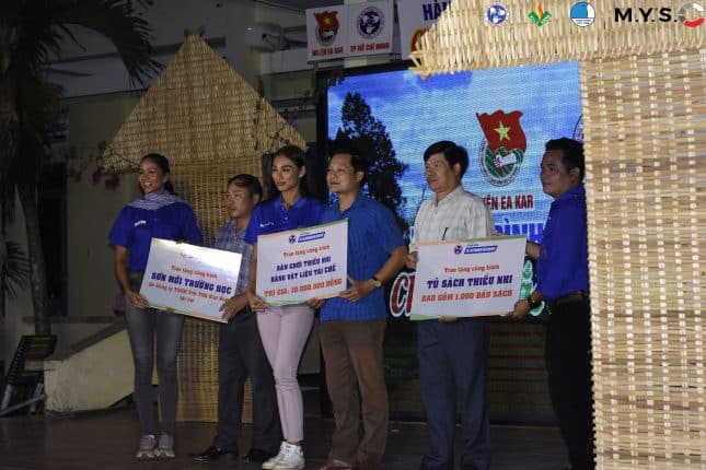 Tại xã Cư Yang và xã Ea Sar, các bạn tình nguyện viên cũng lắp đặt và trao tặng 02 sân chơi thiếu nhi bằng vật liệu tái chế, nhằm tạo khoảng sân cho các em thiếu nhi được vui chơi sau giờ học.