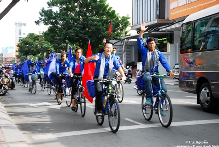 Ca sĩ Hoàng Bách cùng đạp xe với đoàn hành trình