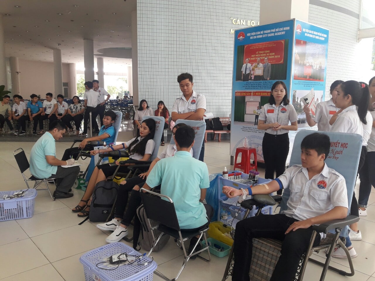 Sinh viên học viện Cán bộ Thành phố tích cực tham gia ngày hội “Hiến máu tình nguyện” do Trung tâm Công tác xã hội Thanh niên thành phố tổ chức tại đơn vị.