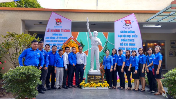 Tượng đài Anh hùng Lý Tự Trọng vừa được khánh thành ngày 19-8 tại khuôn viên Nhà truyền thống Đoàn TNCS Hồ Chí Minh quận Tân Bình (số 292 Âu Cơ).