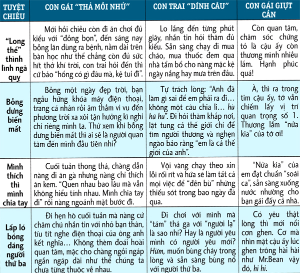 “Tớ cứ nghĩ rằng cách “hù dọa” nói lời chia tay sẽ làm cho “nửa kia” phải lo lắng, không muốn đánh mất mối quan hệ này nên sẽ yêu thương, chiều chuộng tớ hơn. Cứ thế, mỗi khi gặp chuyện gì không vừa ý, tớ đều đề nghị “mình chia tay đi” mà không đắn đo gì. Những lần đầu, cậu ấy liền xin lỗi dù chẳng có tí ti lỗi gì cả nhưng dần thói quen giận lẫy với phép thử vô lí đó khiến cả hai cảm thấy mệt mỏi. Một lần tớ giả vờ nói chia tay, cậu ấy đã gật đầu đồng ý cái rụp. Trong giây phút ấy, tớ chợt nhận ra chính mình là người ích kỉ đẩy cậu ấy ra xa”.
