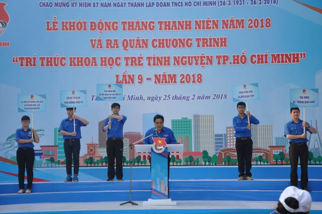 Sáng ngày 25/02, tại Công viên Làng Hoa (quận Gò Vấp), Thành Đoàn TP. Hồ Chí Minh đã tổ chức lễ khởi động Tháng Thanh niên năm 2018 và ra quân chương trình “Trí thức khoa học trẻ tình nguyện Thành phố Hồ Chí Minh” lần 9 năm 2018.