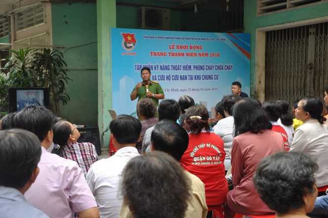 Tuyên truyền về phòng cháy chữa cháy và cứu hộ cứu nạn cho người dân tại chung cư Nguyễn Văn Lượng, quận Gò Vấp.