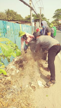 Các bạn tình nguyện viên của đội hình tình nguyện xây dựng “Công viên không rác, không gian xanh” dọn vệ sinh tại tuyến đường Đỗ Xuân Hợp, phường Phước Bình, quận 9.