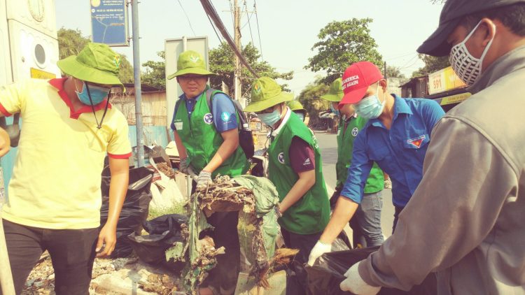 Riêng đội hình tình nguyện xây dựng “Công viên không rác, không gian xanh” triển khai lực lượng dọn vệ sinh tại bãi rác tự phát, tuyên truyền cho người dân các hình thức xử lý rác, lịch thu gom rác hàng tuần của địa phương theo dọc tuyến đường Đỗ Xuân Hợp, phường Phước Bình, quận 9.