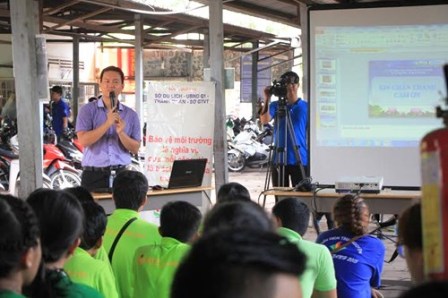 Anh Nguyễn Huy Phương, chuyên viên Văn phòng Biến đổi khí hậu TPHCM, tập huấn kỹ năng bảo vệ môi trường cho các bạn trẻ.