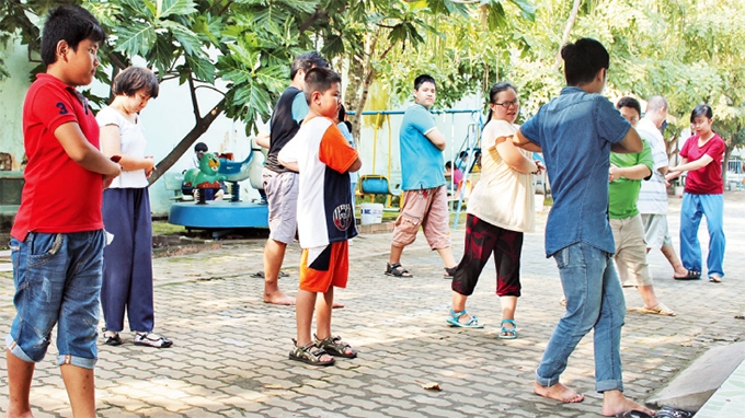 Sinh viên tham gia nhóm tình nguyện hỗ trợ các em ở Trung tâm Nuôi dưỡng bảo trợ trẻ tàn tật, mồ côi Thị Nghè những kỹ năng vận động và giao tiếp.