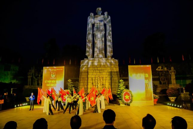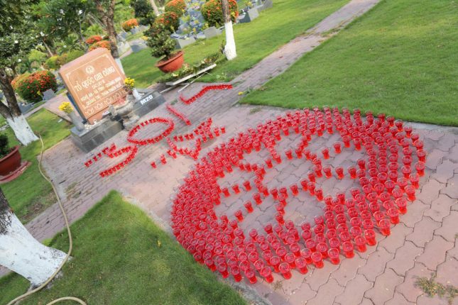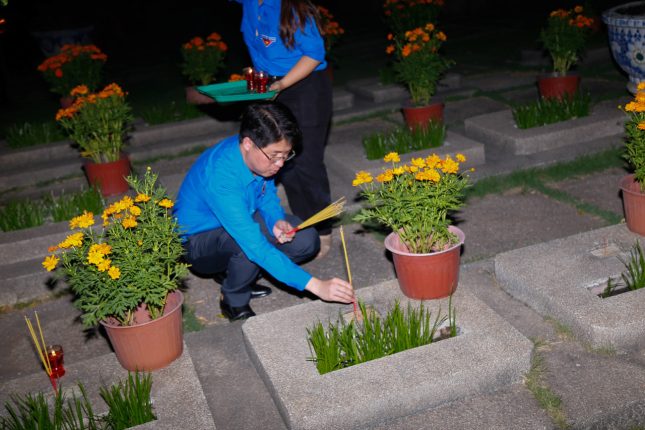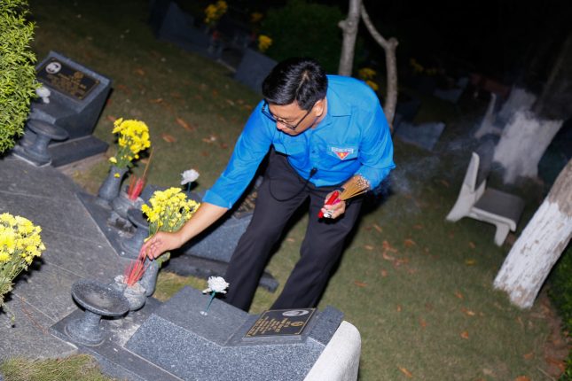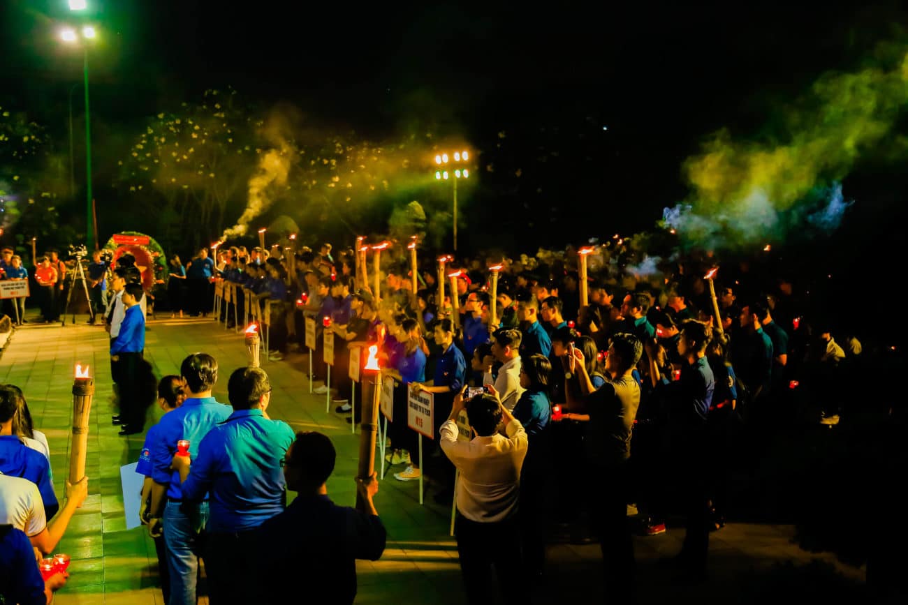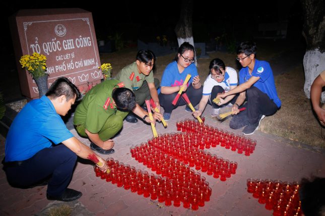Ngay thời khắc thiêng liêng với tất cả sự khâm phục, niềm tự hào và lòng biết ơn sâu sắc, hơn 15.000 ngọn nến được thắp lên đồng loạt trang trọng đặt lên từng phần mộ. Đôi chân từng bạn trẻ cứ bước đi, đôi bàn tay cứ nâng niu từng cảm xúc trân quý.