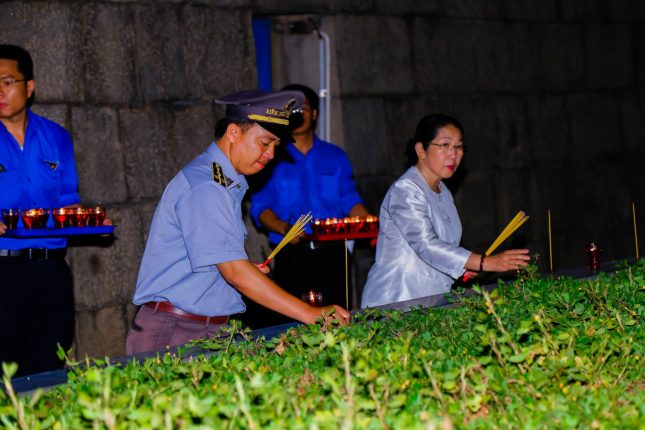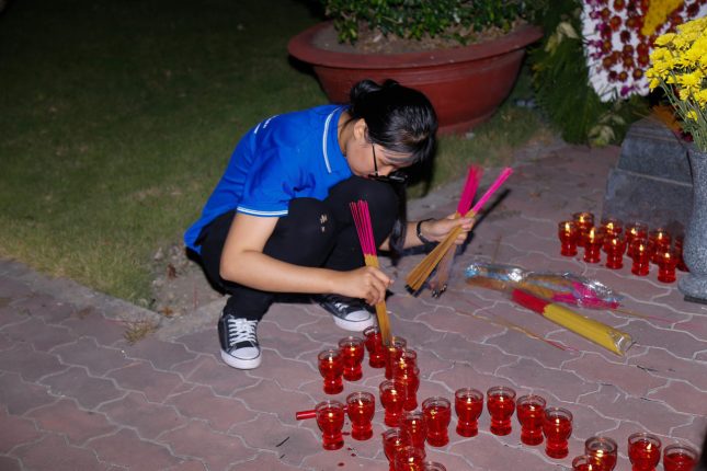 Hoà cùng không khí thiêng liêng của buổi lễ, những ngọn nến lung linh và chất chứa đầy lòng thành kính đã được thắp và dâng lên anh linh những anh hùng liệt sĩ.