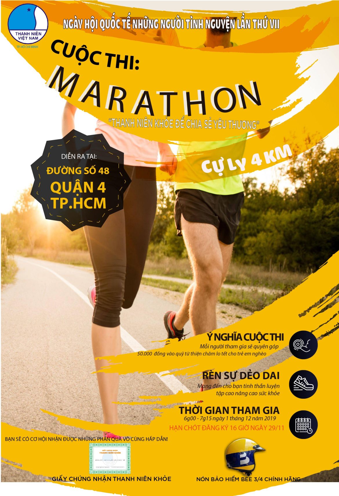 – Thời gian nhận mã số vận động viên: 06g00 ngày 01/12/2019 tại Đường số 48, Quận 4, Thành phố Hồ Chí Minh