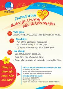 Mời bạn hãy cùng tham gia ngày hội “Xuân yêu thương” năm 2017 do Ban thư ký Hội Liên hiệp Thanh niên Việt Nam TP. Hồ Chí Minh được tổ chức vào ngày 14 và ngày 15/01/2017, tại số 5 Đinh Tiên Hoàng, phường Đa Kao, quận 1