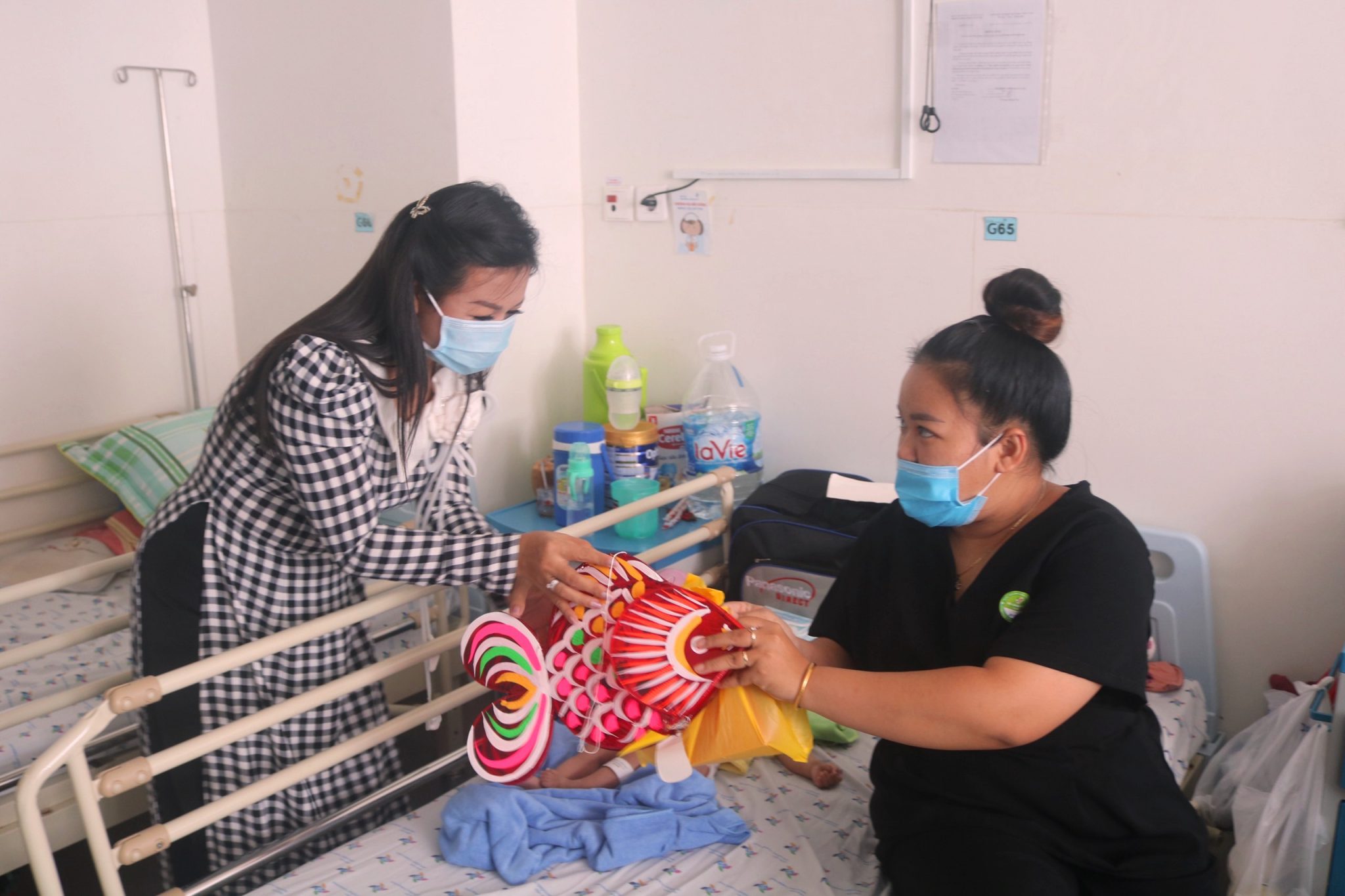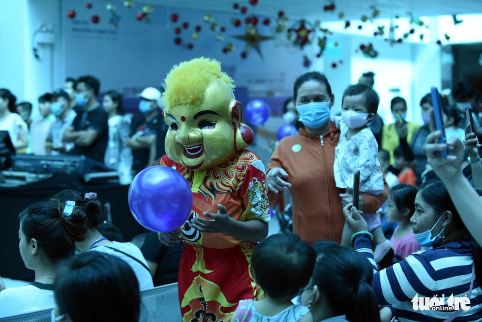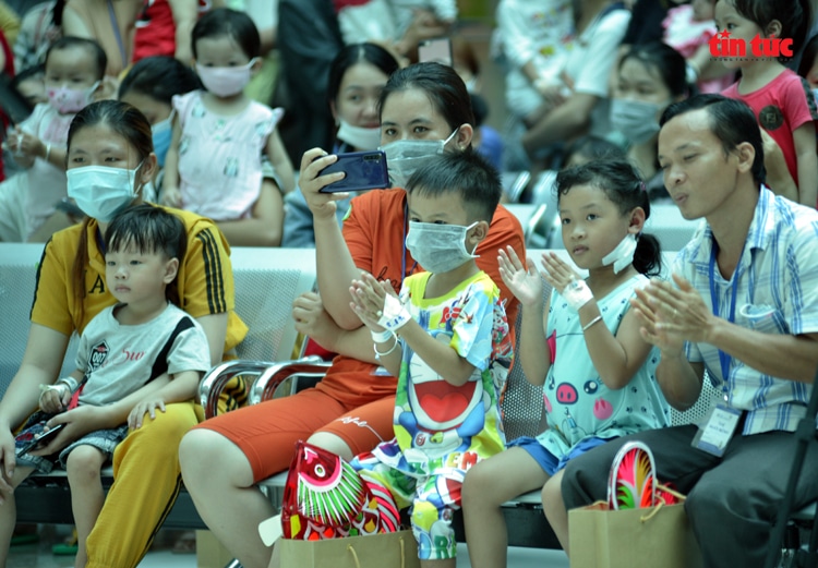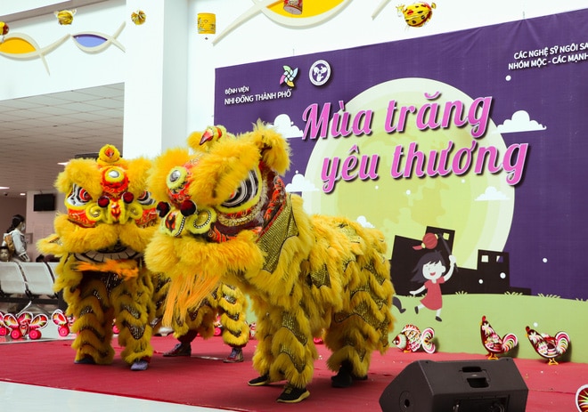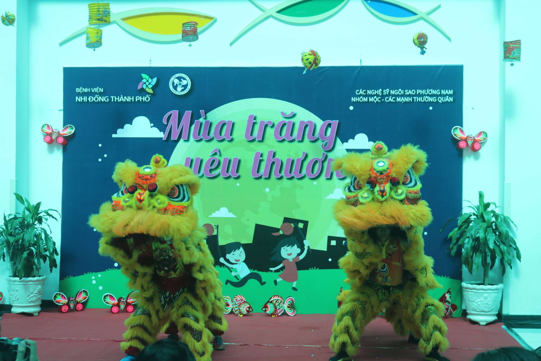 Chương trình diễn ra với các tiết mục văn nghệ, múa lân sư tử, ảo thuật, trò chơi dân gian…, thu hút rất đông bệnh nhi được ba mẹ ẵm xuống tham gia. Tiếng trống lân, tiếng múa hát cùng những phần quà, giúp các em và gia đình thêm ấm lòng khi đang phải chiến đấu với bệnh tật.