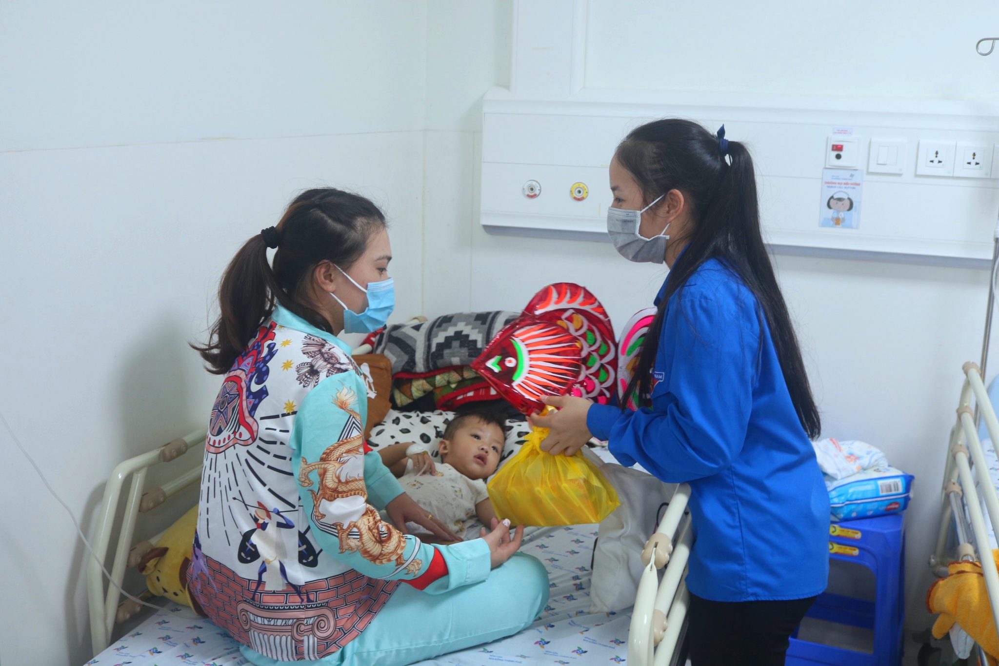 Ngoài những phần quà dành tặng cho các bệnh nhi có mặt tại chương trình, Ban Tổ chức còn đến từng giường bệnh tặng quà Tết Trung thu cho các em đang điều trị tại đây.
