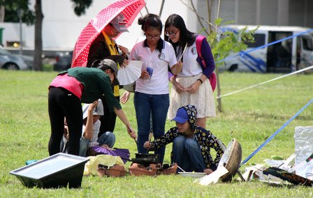 Các bạn trẻ thử nấu ăn bằng năng lượng mặt trời – Ảnh: Phước Tuần