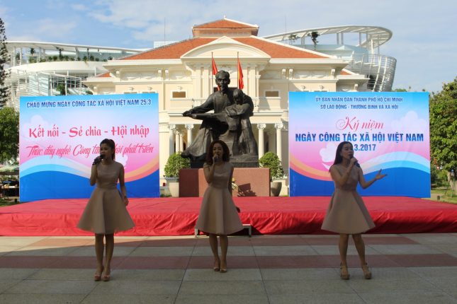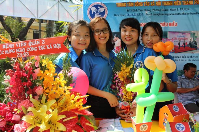 Tình nguyện viên của Trung tâm Công tác xã hội Thanh niên Thành phố tham gia Ngày Công tác xã hội Việt Nam lần I/2017