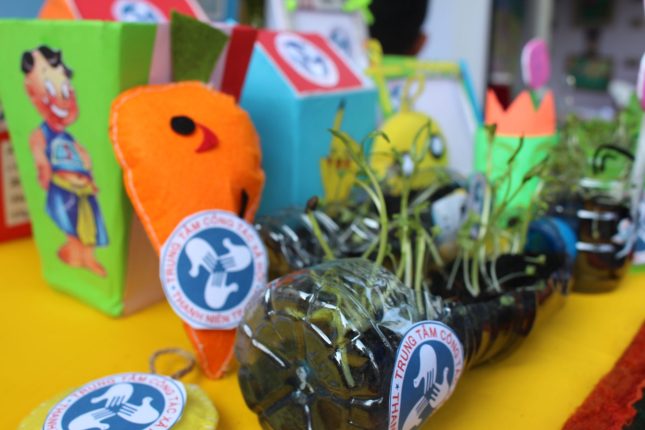 Các sản phẩm handmade được các bạn tình nguyện viên Trung tâm Công tác xã hội Thanh niên Thành phố thực hiện và trưng bày tại gian hàng.