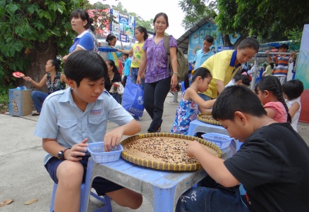 Các em thiếu nhi cùng tham gia các trò chơi dân gian tại ngày hội.