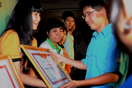 Anh Phạm Hồng Sơn – Phó Chủ tịch Thường trực Hội LHTN Việt Nam TP. Hồ Chí Minh trao tặng giấy khen cho các tập thể và cá nhân có thành tích xuất sắc trong các hoạt động Công tác xã hội trên địa bàn thành phố.