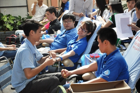 Các bạn thanh niên tình nguyện tham gia hiến trong ngày hội.