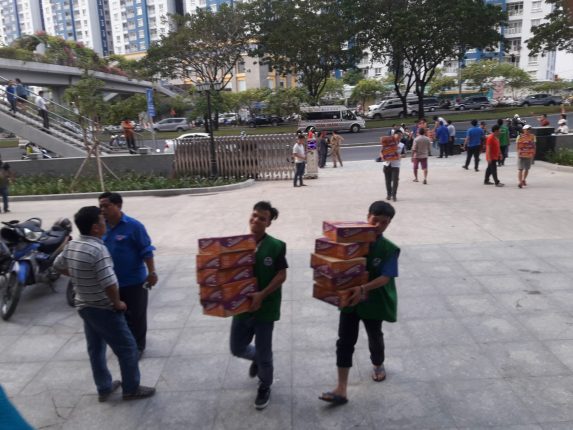 Nhiều bạn trẻ hỗ trợ cư dân Carina ngay sau vụ hỏa hoạn