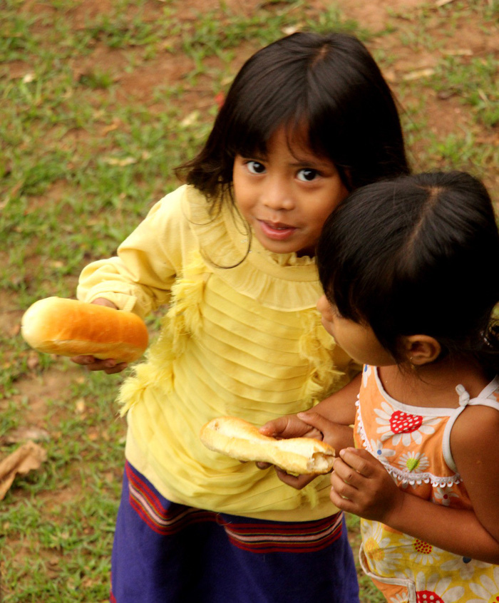 Ổ bánh mì vẫn là món quà quí đối với trẻ em miền núi La Lay – Ảnh: MINH TỰ