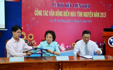 Sáng ngày 18/4/2015, Thành đoàn Thành phố Hồ Chí Minh phối họp cùng Sở Y tế, Trung tâm Hiến máu nhân đạo Thành phố tổ chức lễ ký kết liên tịch về công tác vận động hiến máu tình nguyện năm 2015 trên địa bàn Thành phố tại Trung tâm Công tác Xã hội Thanh niên.