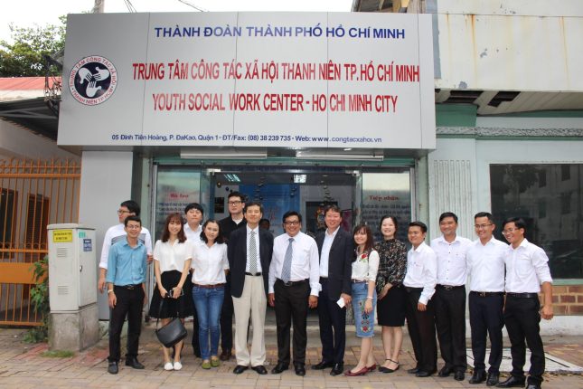 Tiếp đoàn của Hội đồng phúc lợi xã hội Hàn Quốc có anh Dương Ngọc Tuấn – Giám đốc Trung tâm Công tác xã hội Thanh niên Thành phố, anh Võ Minh Hoàng – Phó Trưởng phòng Bảo trợ xã hội (thuộc sở Lao động – Thương binh và Xã hội Thành phố). Về đại diện phía Hàn Quốc do ông Kim Min Woo – Giám đốc Hội đồng quốc gian về phúc lợi xã hội Hàn Quốc làm trưởng đoàn.