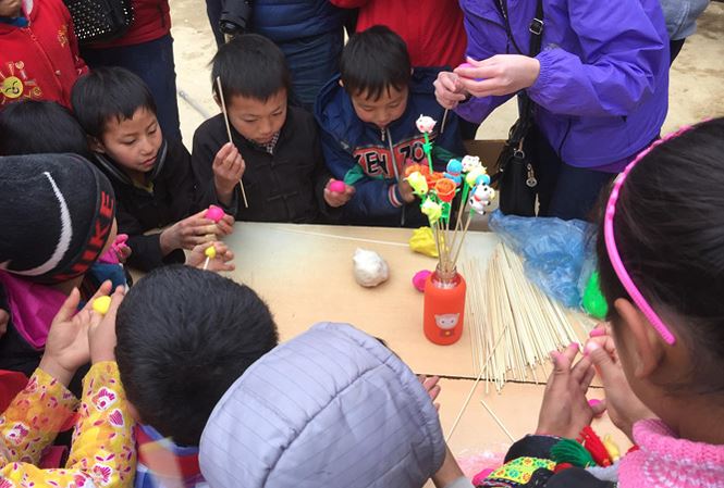 Học sinh Trường Phổ thông Dân tộc bán trú tiểu học Lũng Cú, Đồng Văn (Hà Giang) trải nghiệm ngày tết dương lịch với các trò chơi dân gian, nặn tò he.