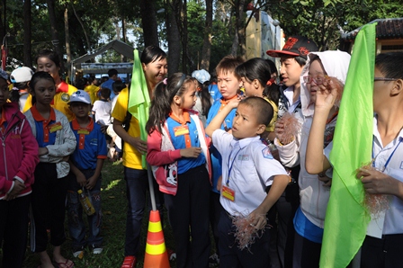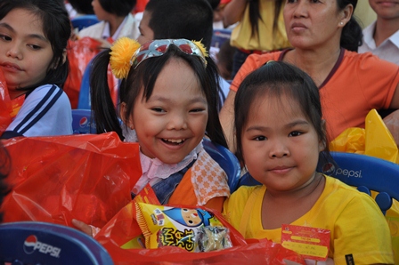 Niềm vui của các em khi tham gia chương trình với nhiều nội dung hấp dẫn.