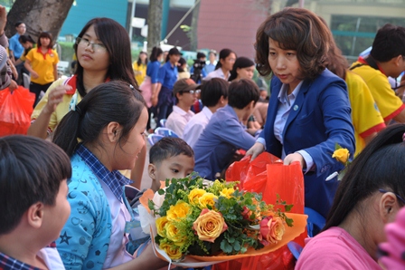 Chị Nguyễn Thanh Xuân – Phó Bí thư, Trưởng ban Thiếu nhi Thành đoàn chúc tết các em thiếu nhân dịp đón chào xuân mới.