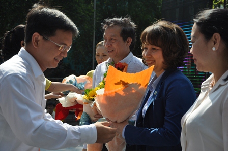 Anh Nguyễn Mạnh Cường – Bí thư Thành đoàn, Chủ tịch Hội Sinh viên Thành phố tặng hoa thay lời cảm ơn đến cá đơn vị tài trợ và hỗ trợ thực hiện chương trình