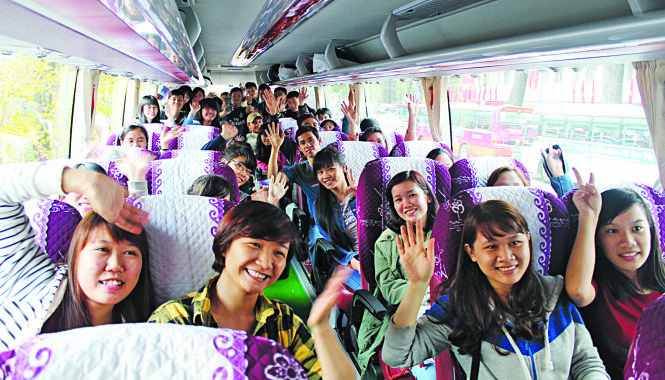 Nụ cười rạng rỡ của các bạn sinh viên trên “Chuyến xe mùa xuân – Tết sum vầy” 2016 về sum họp cùng gia đình ngày cuối năm – Ảnh: Q.L.