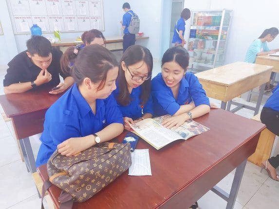 Các bạn Đoàn viên, thanh niên và các em thiếu nhi cùng tham gia đọc sách tại Trung tâm học tập cộng đồng phường Hiệp Thành, quận 12