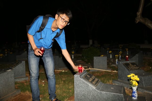 Tại nghĩa trang liệt sĩ Thành phố (quận 9), chương trình lễ thắp nến tri ân các anh hùng liệt sĩ có sự tham Tham dự của nguyên Phó Bí thư Thường trực Thành ủy TPHCM Nguyễn Văn Đua, Phó Bí thư Thành ủy TPHCM Võ Thị Dung, Bí thư Thành đoàn TPHCM Phạm Hồng Sơn cùng CLB Truyền thống kháng chiến Thành đoàn và hơn 1.000 đoàn viên thanh niên TP. Các đồng chí lãnh đạo cùng đoàn viên thanh niên đã cùng dâng hoa, dâng hương tưởng niệm và thắp hương, thắp nến cho 14.500 ngôi mộ tại Nghĩa trang Liệt sĩ TPHCM.